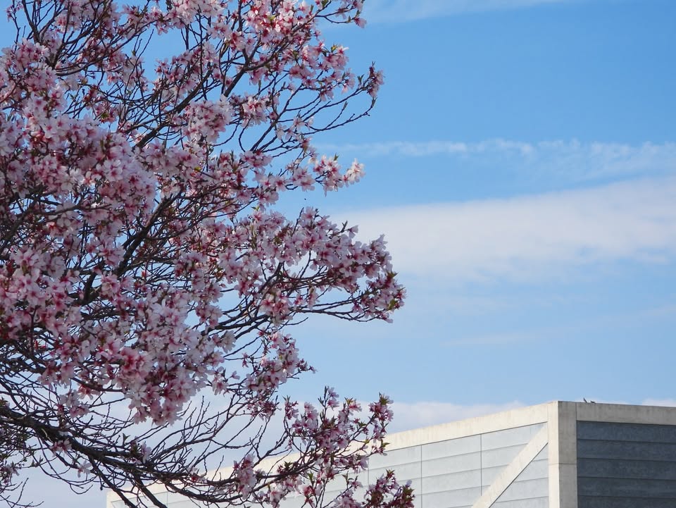 博物館の上でハトがマッタリ〜♪お花見してるポンよ〜(*゚▽゚*)