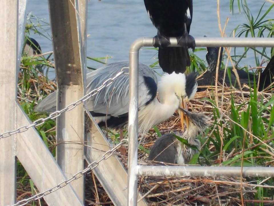 アオサギの赤ちゃんもゴハン中♪