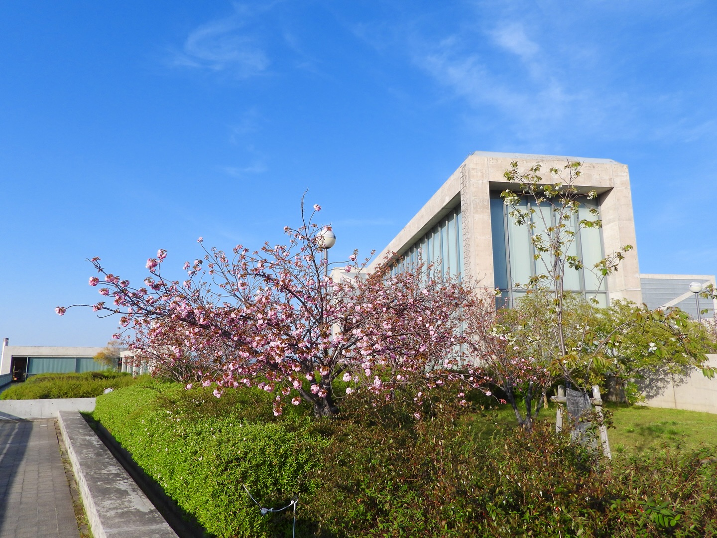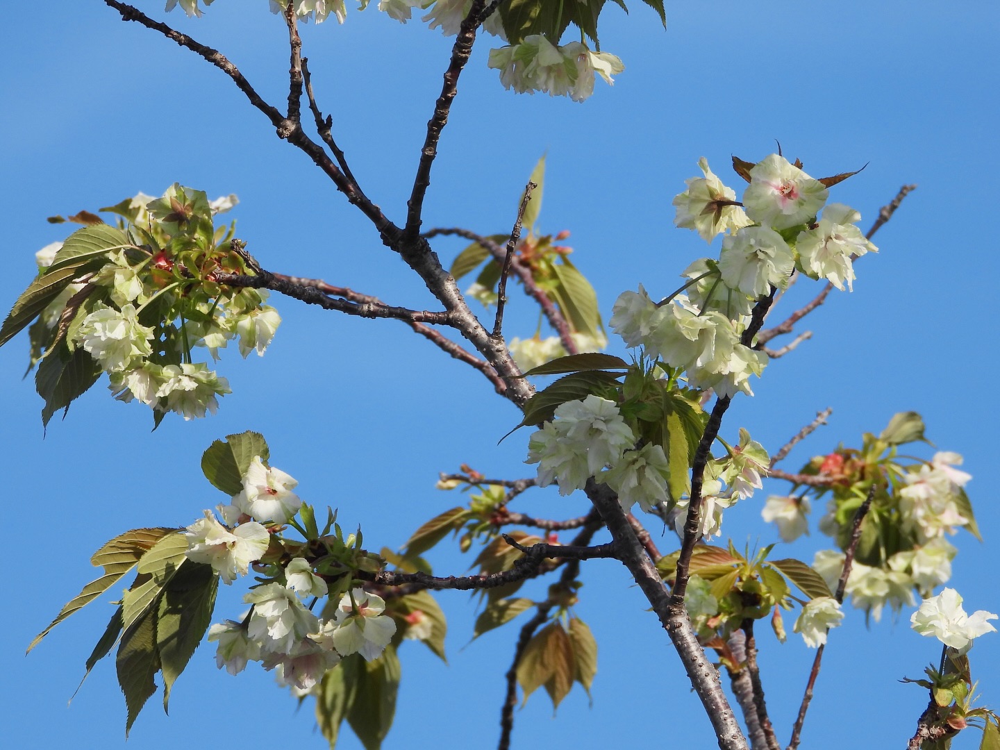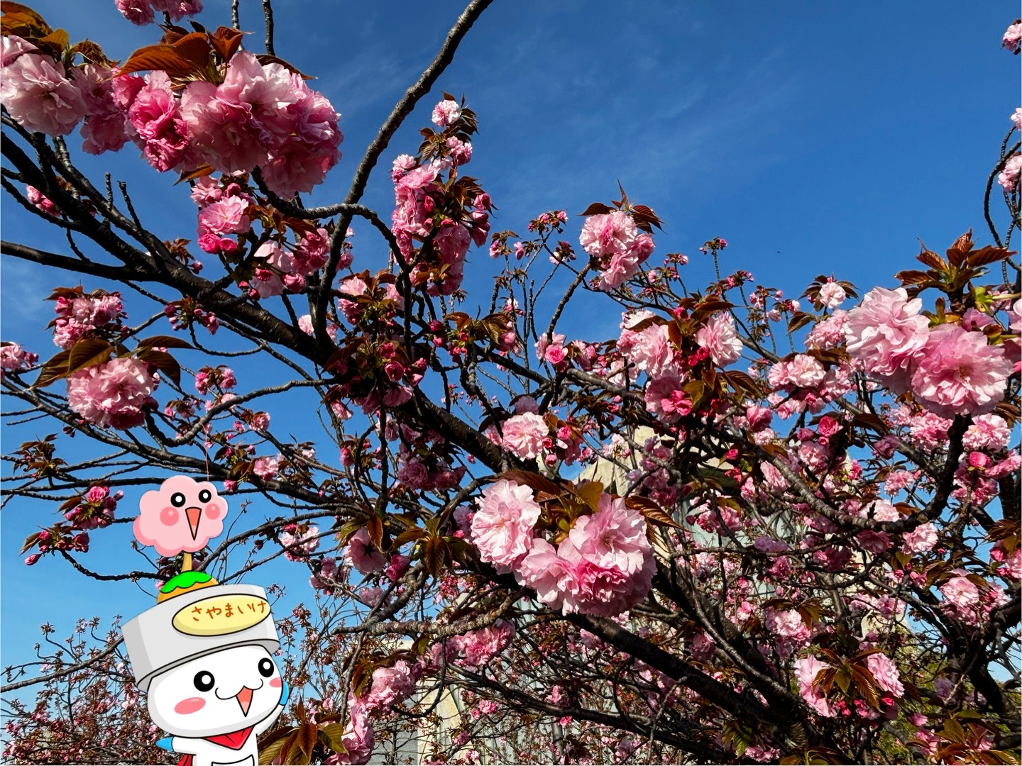 博物館前のヤエザクラ咲いてきてるポンよ〜(=^▽^)σ